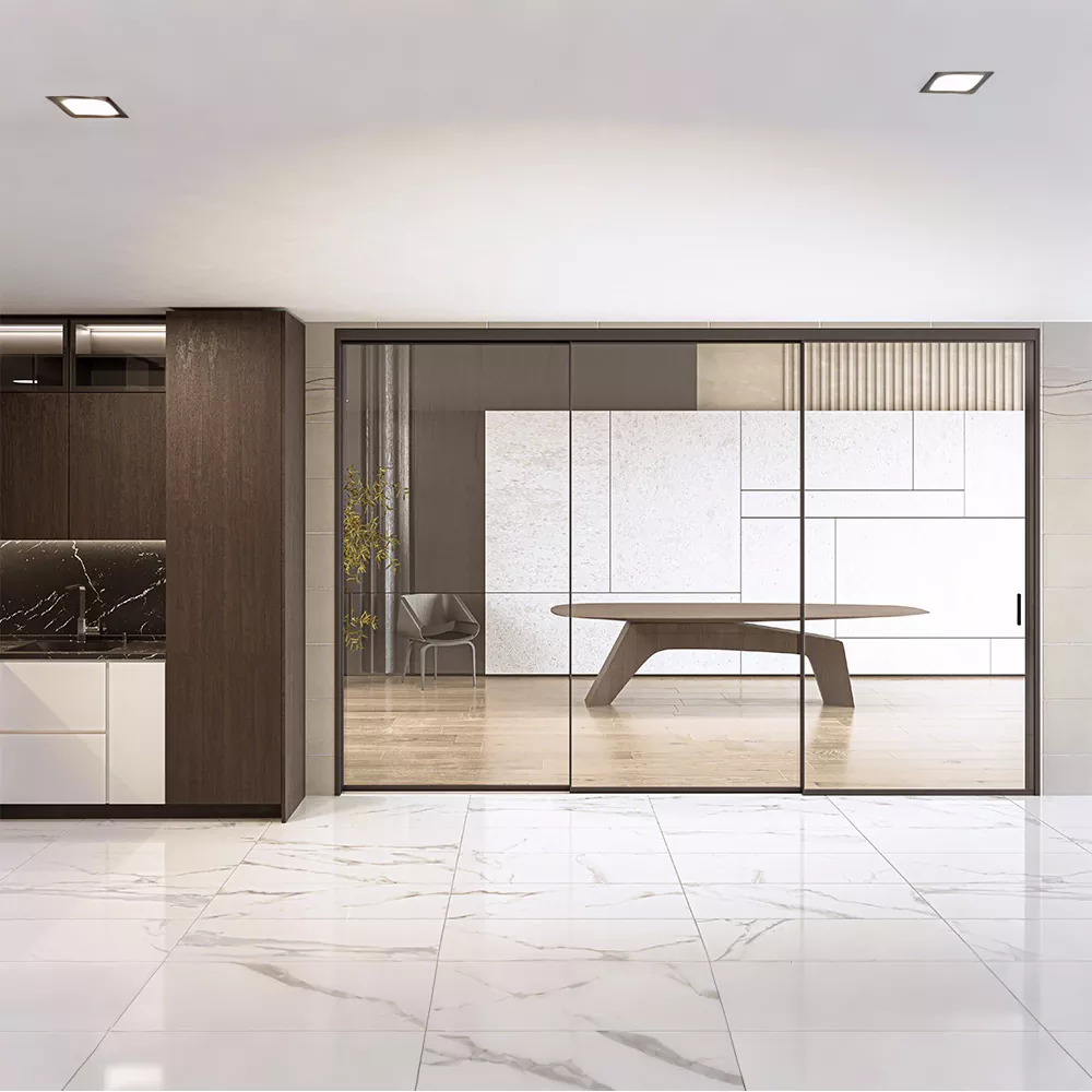 La puerta corrediza extremadamente estrecha se refiere al uso de un marco ultraestrecho + un diseño de riel minimalista, con un borde extremadamente estrecho de 1,5 a 2 cm para romper la sensación de pesadez de la puerta corrediza tradicional, haciendo el espacio más transparente y abierto. Ya sea para ampliar la capacidad de un apartamento pequeño o para mejorar la sensación de lujo en un apartamento grande, se puede lograr un equilibrio perfecto entre función y estética en forma de "límite invisible".